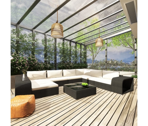 Komplektā ietilpst 10 mēbeles, kuras jūs varēsiet izkārtot sev nepieciešamajā veidā. Mēbeles ir izgatavotas no pulverkrāsota tērauda rāmja ar izturīgu polietilēna (PE) rotangpalmas pinuma apdari, tādēļ tās ir stipras un noturīgas pret dažādiem laikapstākļiem. Pateicoties rotangpalmas imitācijas materiālam, dīvānu komplekts ir viegli tīrāms un piemērots ikdienas lietošanai. Biezi polsterētie matrači un īpaši dziļās, modernās sēdvietas ļaus jums izbaudīt patiesi labu atpūtu. Sēdekļu matraču pārvalki ar rāvējslēdzējiem ir vienkārši noņemami un mazgājami.
