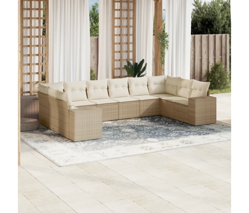 10-Daļīgs Dārza Dīvāna Komplekts, Matrači, Bēša Pe Rotangpalma Vidaxl