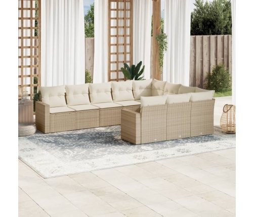 10-Daļīgs Dārza Dīvāna Komplekts, Matrači, Bēša Pe Rotangpalma Vidaxl