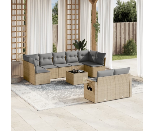10-Daļīgs Dārza Dīvāna Komplekts, Matrači, Bēša Pe Rotangpalma Vidaxl