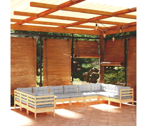 10-Daļīgs Dārza Mēbeļu Komplekts Ar Pelēkiem Matračiem, Priede Vidaxl