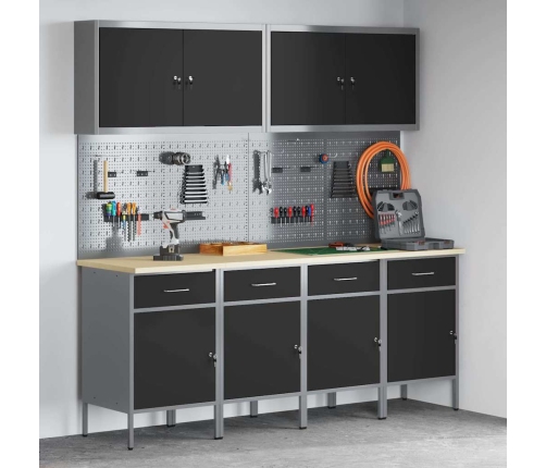 Šis augstuma regulējamais darbnīcas uzglabāšanas skapis apvieno stilu un funkcionalitāti - ideāls ikvienam, kas grib, lai viņa garāža vai darbnīca būtu kārtīga. Modernā melnā un pelēkā dizains piešķir mūsdienīgu aspektu jebkurai telpai, vienlaikus nodrošinot pietiekami daudz vietas instrumentiem un aprīkojumam.