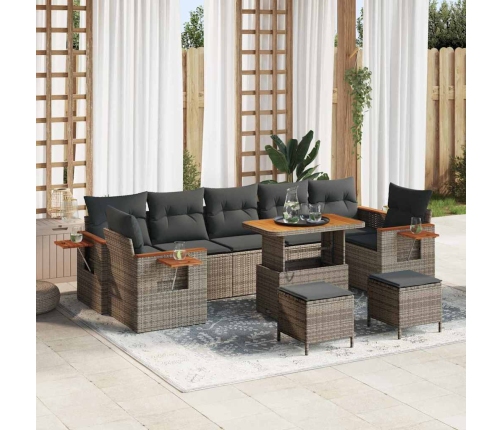 Šis 10 daļu liels āra dārza dīvānu komplekts apvieno eleganci un praktiskumu. Tas ir ideāls plašām terasēm vai dārziem. Ar savu stilīgu pelēko poliratanā apdari un dabīgo koka akcentu, šis komplekts ir izstrādāts, lai uzlabotu jūsu āra pieredzi un piedāvātu pietiekamu sēdvietu ģimenei un draugiem.