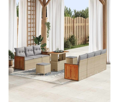 Ņemot vērā, ka šis dārza dīvānu komplekts ir stilīgs un praktisks, tas lieliski piemērots visi nedaudz atpūtai ar līdz sešiem cilvēkiem. Tas ar bēšo rokas austo poli rotangpalmas konstrukciju un akācijas koka virsotnēm, veido elegantu atmosfēru, kas ideāli piemērota dārziem, balkoniem vai terasēm.