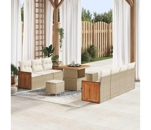 Šis dārza dīvānu komplekts ir patīkams stilu un funkcionalitātes apvienojums, kas paredzēts līdz sešām personām. Ar stilīgu bēšu poli rotangpalmu un izturīgu akāciju koku tas rada elegantu āra atmosfēru, kas ideāli piemērota terasēm, balkoniem vai dārziem.