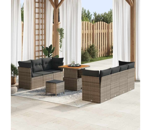 Šis dārza dīvānu komplekts ir viss par modernu āra dzīvošanu, apvienojot stilu ar praktiskiem elementiem. Tas ir izgatavots no pelēka poli rotangpalmas un balstīts uz stingra tērauda rāmja, un šis liels 10 gabalu komplekts lieliski iederas dažādās āra vietās - balkonos, terasēs vai dārzos.