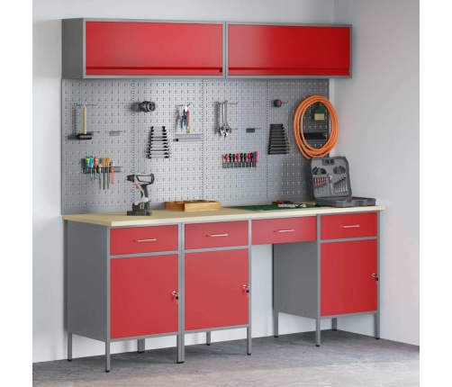 Šis industriālais darbnīcas uzglabāšanas skapjis apvieno praktiskumu un izskatu, piedāvājot stilīgu sarkano un pelēko kombināciju, kas atsvaidzinās tavu darba vietu. Izgatavots no izturīga tērauda un inženierijas koka, tas ir radīts, lai kalpotu un pilda praktisku lomu, ideāli piemērots garāžām vai darbnīcām.