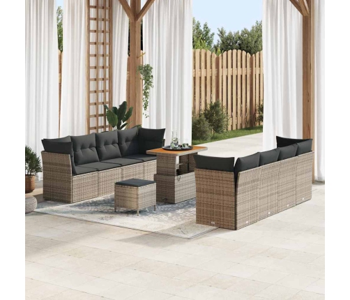 Šis 11-daļīgais dārza dīvānu komplekts ir stilīgs un daudzpusīgs risinājums tavai āra sēdvietām. Ar elegantu pelēko apdari un ērtajiem tumši pelēkajiem spilveniem, tas piešķir īpašu noskaņu jebkuram dārzam, balkonam vai terasei.