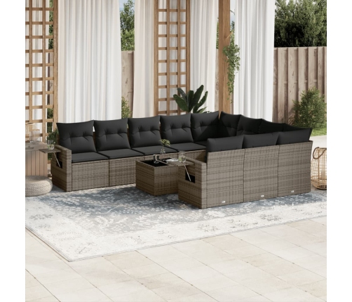 11-Daļīgs Dārza Dīvāna Komplekts Ar Matračiem, Pelēks Pe Pinums Vidaxl