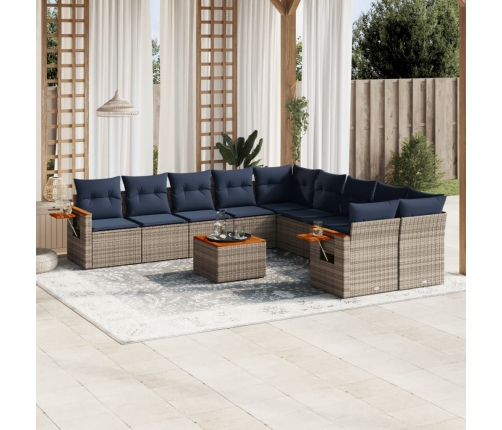 11-Daļīgs Dārza Dīvāna Komplekts Ar Matračiem, Pelēks Pe Pinums Vidaxl