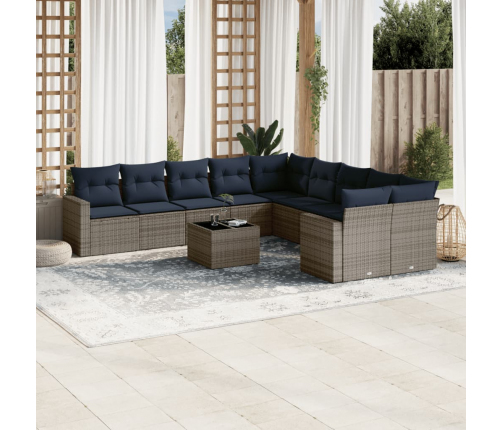 11-Daļīgs Dārza Dīvāna Komplekts Ar Matračiem, Pelēks Pe Pinums Vidaxl