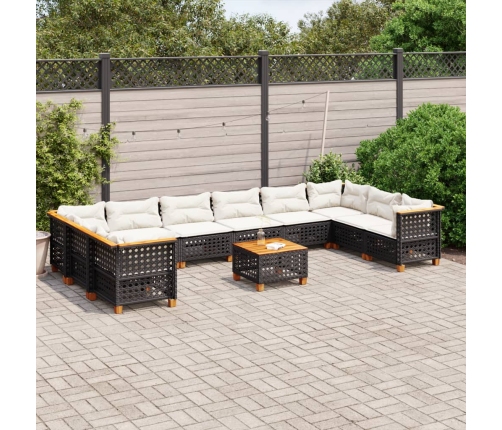 11-Daļīgs Dārza Dīvāna Komplekts, Matrači, Melna Pe Rotangpalma Vidaxl