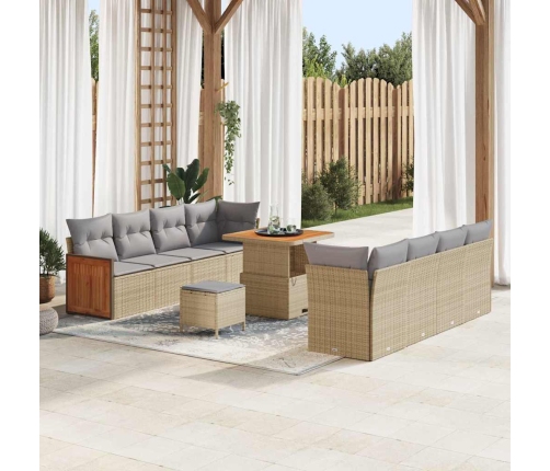 vidaXL 11 daļīgs dārza dīvānu komplekts ar spilveniem ir stilīgs un moderns, nodrošinot ērti sēdvietas līdz četriem cilvēkiem ārpus telpām. Ar savu stilīgo bēšo poli rotangpalmu un dabiskā koka akcentiem, tas lieliski iederas uz jūsu balkona vai terases, piedāvājot komfortu un stilu, kas aicina uz relaksāciju saulainās dienās vai mājīgās vakaros kopā ar draugiem.