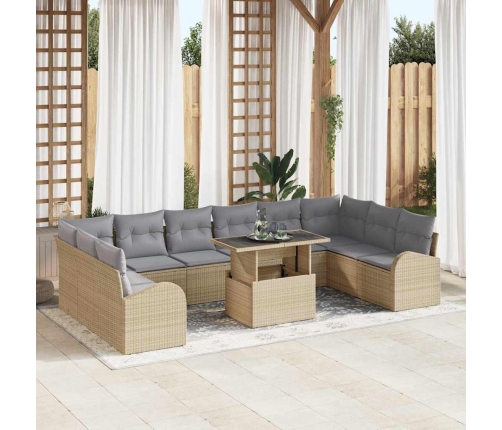 Šis 11 daļu dārza dīvānu komplekts ir stilīgas dizaina un praktiskuma kombinācija, perfekti piemērots jaukas atmosfēras radīšanai ārā. Ar modernu izskatu un šiku bēšas poli rotangpalmas rāmi, kā arī pelēkiem spilveniem, tas ne tikai izdaiļo tavu balkonu vai patio, bet arī nodrošina ērtu vietu lielām sanāksmēm ar ģimeni vai draugiem.