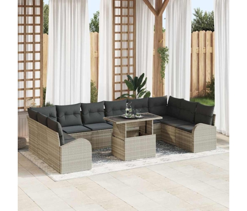 Šis 11 daļu dārza dīvānu komplekts apvieno stilu un praktiskumu, padarot to ideāli piemērotu jūsu āra telpai. Modernais dizains piedāvā elegantu bēšas poli rotangpalmas rāmi ar gaiši pelēkiem spilveniem, kas atsvaidzina jūsu balkonu vai patio un nodrošina daudz sēdvietu ģimenei un draugiem.