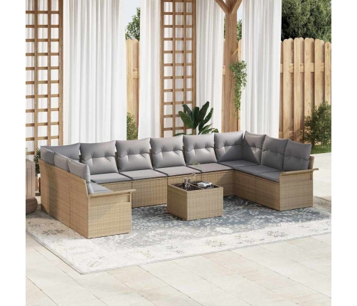 Šis 11 daļu āra dīvānu komplekts ir tieši tas, kas tev vajag tavā dārzā vai balkonā. Tas apvieno komfortu un stilu, radot mājīgu atmosfēru. Eleganta dizaina bēša polietilēna rotangpalmas rāmis un mīkstie pelēkie spilveni lieliski papildina viens otru un lieliski iederas visur, kur āra dekors ir svarīgs, ideāli piemērots ģimenes ballītēm vai laika pavadīšanai.