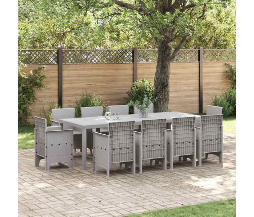 Šis dārza ēdamgaldu komplekts ir no izturīga poliretāna modernā gaiši pelēkā krāsā. Tas nāk ar plašu taisnstūra galdu un astoņiem ērtiem krēsliem, padarot to par lielisku izvēli āra maltītēm. Ar savu moderno stilu un teksturēto apdari šis komplekts piešķir stilu jebkuram balkonam vai terasei un rada funkcionālu un skaistu vietu sanāksmēm, grilēšanai un ģimenes vakariņām.