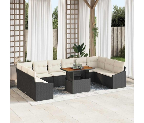 Šis 11 gab. dārza dīvānu komplekts pārvērš āra telpas par ērtām atpūtas vietām. Melnā poli ratana izskats lieliski piešķir jēgu krēmkrāsas spilveniem, radot ideālu atmosfēru saulainām dienām vai vakara pasākumiem, piedāvājot visu nepieciešamo atpūtai vai viesējo uzņemšanai.
