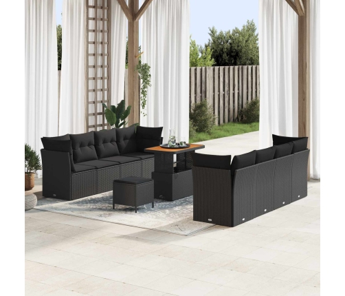 Šis 11 gab. dārza dīvānu komplekts ir stilīgs un pielāgojams risinājums tavām āra sēdvietām. Sleek melnā krāsa un ērti spilveni uzlabo jebkuru dārzu, balkonu vai patio, piešķirot gan klasi, gan komfortu.
