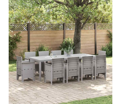 Šis dārza galds, izgatavots no izturīgas polietilēna rotangpalmas gaiši pelēkā krāsā, piedāvā lielu taisnstūra galdu un desmit ērti krēslus, padarot to par ideālu vietu ārā ēšanai. Tā mūsdienīgais izkārtojums uzlabo jebkuru balkonu vai terasi, dodot stilīgu un praktisku vietu sanāksmēm, grilēšanai un ģimenes ēdienreizēm.