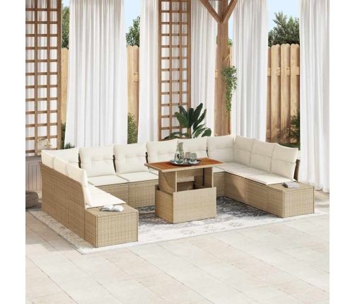 Šis 11 gabalu dārza dīvānu komplekts ir lielisks stila un praktiskuma apvienojums, nodrošinot ērti sēdvietas jebkurā āra telpā. Ar mīkstiem spilveniem bēšā un krēmkrāsā un modernu dizainu tas ir lieliski piemērots kopā sanākšanām, atpūtai vai izklaidēšanai – īsts nepieciešamais balkonam, dārzam vai verandai.