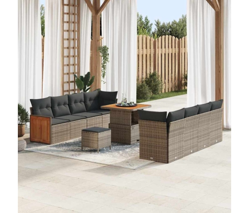 Šis 11 gabalu dārza dīvānu komplekts ar spilveniem piedāvā modernu stilu un ērtu sēdēšanu taviem āra pasākumiem. Eleganta pelēkā poli rotangpalmas krāsa un akācijas koka akcenti padara to par ideālu izvēli jebkurai terasei vai dārzam, nodrošinot komfortu un stilīgu izskatu āra dzīvošanai.