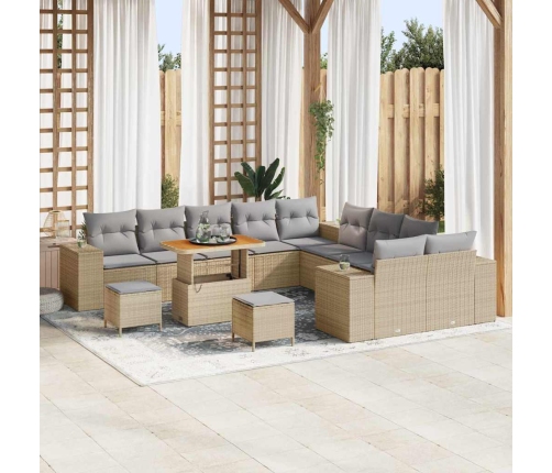 Šis plašais vidaXL 13 daļu dārza dīvānu komplekts piešķir modernu stilu taviem āra apstākļiem, vienlaikus bido pats funkcionāls, dodot tev perfektu komforta un stila sajaukumu, lai svinētu vai atpūstos. Izgatavots no izturīgas poli rotangpalmas, tas piedāvā jauku bēša un gaiši pelēka kombināciju, kas izceļas un lieliski iederas tavā dārzā vai terasē. Tas ir lielisks izvēle sociālajiem pasākumiem vai klusām vakariņām.