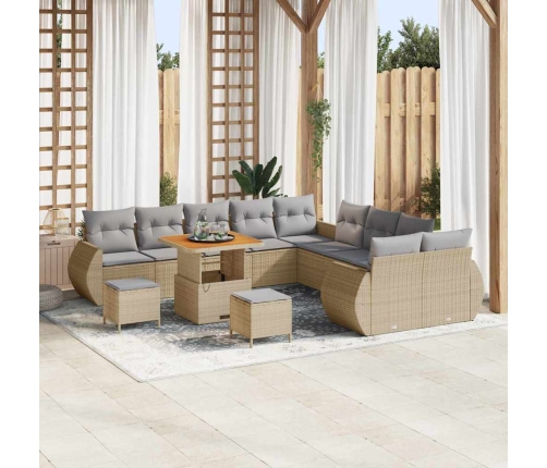 Šis dārza dīvānu komplekts ir lieliska izvēle āra atpūtai, ideāli piemērots kopā sanākšanai saulainās dienās. Tas nāk ar 13 gabaliem un mīkstiem spilveniem, kas ir apņemti ar laika apstākļiem izturīgu poliestera audumu. Universālais bēša polietilēna rotangpalmas aužams tiek izvietots ap cietu rāmi, padarot to ērtu un izskatīgu.