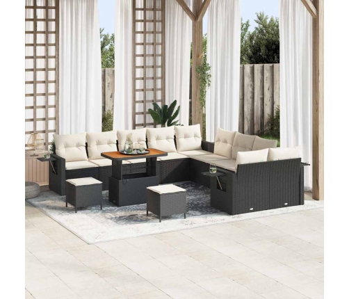 vidaXL 13 gabalu modulārais āra dīvānu komplekts ir plašs un apvieno komfortu ar daudzpusību āra izklaidei. Ar mūsdienīgu melno poli rotangpalmu un elegantiem krēma spilveniem, tas uzsver jebkuru dārzu, patio vai balkonu, radot sakoptu vietu atpūtai vai relaksācijai.