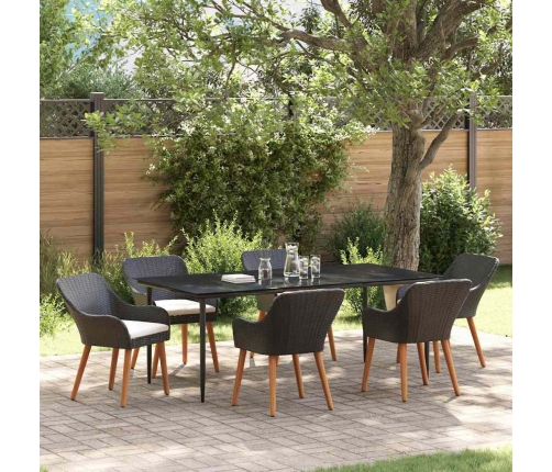 Šis mūsdienīgais patio ēdamgalds ir ideāls āra maltītēm un izklaidei. Ar taisnstūra galdu un sešiem krēsliem tas pārvērš tavu dārzu par patīkamu vietu, kur ģimene un draugi var kopīgi ēst.