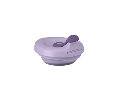 Oryginalna silikonowa miseczka z pokrywką, dzięki której z łatwością nakarmisz malucha w podróży.
