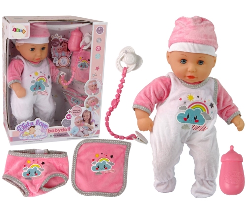 Baby Doll Sound Pacifier Bib Pink White Cloud Pyjamas