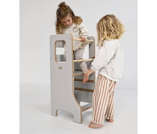 Konstrukcja Kitchen Helpera została dobrze przemyślana po to, żeby jak najlepiej służył Waszemu maleństwu. Zaokrąglone ranty zmniejszają ryzyko skaleczenia się, a specjalne szczebelki zabezpieczają dziecko przed wypadnięciem czy poślizgnięciem. Dodatkową zaletą jest możliwość regulacji wysokości podnóżka- możesz wybrać jeden z trzech poziomów, dopasowując Kitchen Helper do wzrostu dziecka i blatu kuchennego. To także pewność, że pomocnik posłuży Wam przez lata, "rosnąc" razem z dzieckiem. Kolejnym ułatwieniem jest schodek, który ułatwia dziecku wejście na podest.