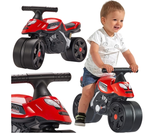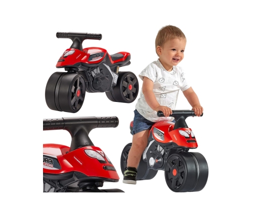 Motocikls no Francijas uzņēmuma Falk ir ideāls dāvanas piedāvājums bērniem no 2 gadu vecuma. Skaistā grafika un ļoti reālistiska izskata dizains sagādās daudz prieka mazajiem. Jezdziķis aprīkots ar lieliem riteņiem, kas lieliski piemēroti dažādām virsmām. Priekšējais ritenis ir pagriežams, nodrošinot ērtāku vadāmību un pagriešanu.