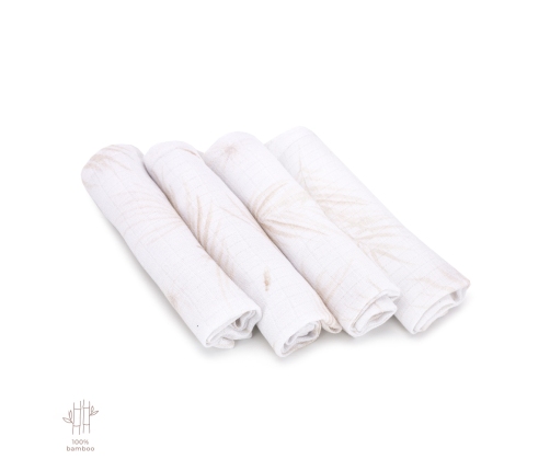 Komplekts ar 4 salvīm no 100% bambusa muslīna. Īpaši maigas bambusa salvetes ir pārklātas ar antibakteriālām sudraba mikrodaļiņām, kas nodrošina izcilu aizsardzību pret baktērijām. Tas ir maigākais, visdabiskākais audums, ko varat dāvāt savam mazulim.
