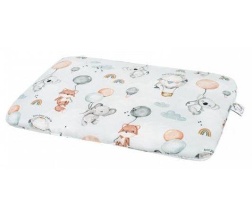 Płaska poduszeczka dla najmłodszych, wykonana jest z wysokogatunkowej bawełny 100%, którą z drugiej strony uzupełnia mięciutki plusz minky. Środek poduszki wypełniony jest antyalergiczną włókniną wysokopuszystą silikonową.