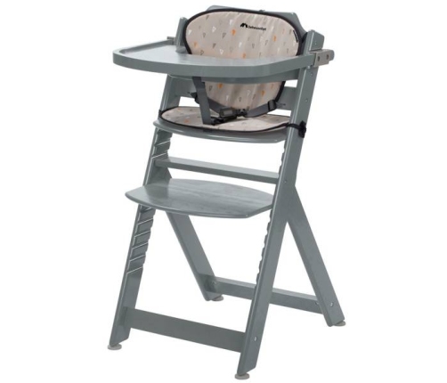 Drewniana Timba produkcji cenionej marki Bebe Confort szturmem podbiła serca wielu rodziców na całym świecie. Przez długi czas będzie podążać za potrzebami rosnącego dziecka. Demontując bądź zmieniając ustawienie kolejnych części może pełnić rolę klasycznego krzesełka do karmienia, bezpiecznego krzesła do dostawienia do stołu lub zwykłego krzesła z opcją podwyższenia siedziska. Komfortowa wkładka, szeroka tacka i antypoślizgowe nakładki na nogi uczynią każdy posiłek przyjemniejszym.