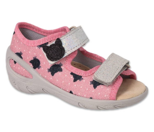 Wygodne sandały to idealny wybór na słoneczne dni. Regulowane zapięcie pozwala na swobodne dopasowanie do małej stopy dziecka. Skórzana wyściółka gwarantuje najwyższy komfort noszenia oraz ograniczenie nadmiernej potliwości. Kolorystyka jest uniwersalna i pasuje do wielu dziecięcych stylizacji. Sandałki sprawdzą się bardzo dobrze jako obuwie zamienne w żłobku lub przedszkolu dla dzieci z wyższym podbiciem.