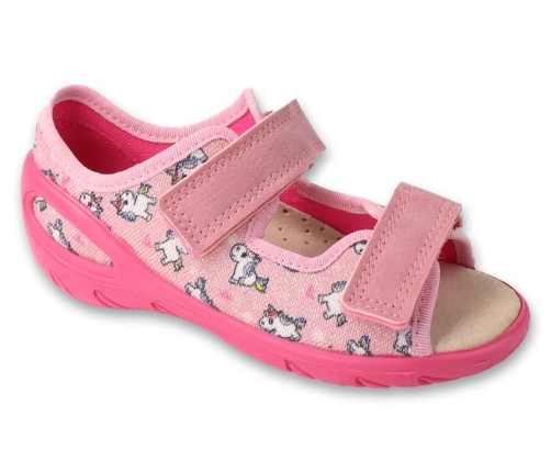 Sandałki Sunny ze skórzaną wkładką to obuwie, które daje dziecku mnóstwo komfortu w czasie kiedy najbardziej go potrzebuje. Zabawy i spacery na zewnątrz wymagają przewiewnych i lekkich bucików, które można regulować. Skórzana wkładka jest także łatwa do zachowania czystości i higieny. Sandałki sprawdzą się bardzo dobrze, jako obuwie zamienne w przedszkolu lub żłobku. Dziecięcy motyw przypadnie do gustu miłośnikom dinozaurów.