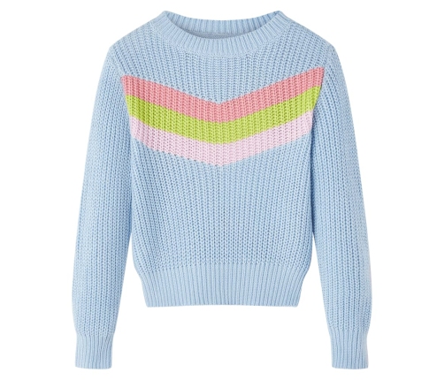 Šim bērnu džemperim ir garas piedurknes, šaurs kakla izgriezums un taisns piegriezums. Bērnu džemperim ir krāsaini V-veida raksti. Bērnu džemperis ir izgatavots no 100% kokvilnas ar rievotu adījumu, kas nodrošinās papildu siltumu un komfortu.