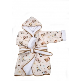 Bērnu maigs, mīksts halāts TROLL Owls ar ar kapuci. Halāta iekšpuse ir no augstvērtīga frotē auduma, kas nodrošina izcilu mitruma uzsūkšanu. Visas šuves ir paslēptas.