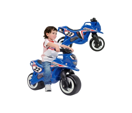 Šis bērnu līdzsvara motocikls, ko radījis pazīstamais Spānijas uzņēmums INJUSA, ir izcila īsta sacīkšu motocikla imitācija, kas pievērš uzmanību pat vissīkākajām detaļām. Rūpīgi nostrādāti elementi, iestrādātas uzlīmes un plati riteņi – tas viss, lai nodrošinātu maksimālu komfortu un drošību! Ideāla dāvana katram mazulim no 18 mēnešu vecuma. Sportiskais dizains iepriecinās ikvienu jauno automobiļu entuziastu.