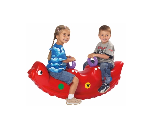 Bujak Wieloosobowy Dinozaur marki BIG jest prawdziwą gwiazdą wśród dzieci! Z bujaka może korzystać maksymalnie troje dzieci jednocześnie, a nawet jedno będzie się świetnie bawić. Gdy dzieci bujają się we dwójkę to dodatkowo rozwija u nich zdolności do współpracy. Solidne uchwyty zapewnią bezpieczeństwo a łuski na grzbiecie dinozaura zapobiegną zbyt gwałtownemu kołysaniu. Bujanie samo w sobie uspokaja dziecko oraz rozwija zdolności motoryczne ciała, co jest idealne dla prawidłowego rozwoju. Z huśtawki można korzystać zarówno w domu jak, i na zewnątrz!