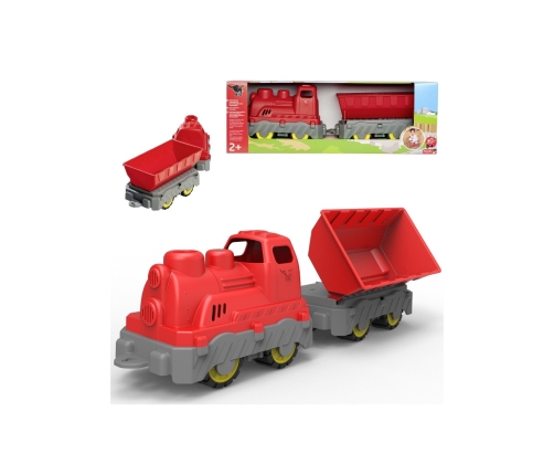 - 2-częściowy zestaw – Lokomotywa z odłączanym wagonem-wywrotką pozwala na różnorodne scenariusze zabawy. Transportuj, łącz i rozdzielaj – jak na prawdziwym placu budowy!