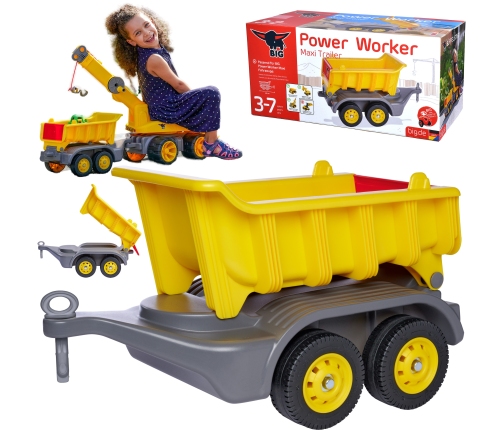 Jaudīgais un jaudīgais BIG Power Worker Maxi piekabe ir ideāls papildinājums esošajiem BIG Power Worker Maxi būvlaukuma transportlīdzekļiem. Jauno piekabi var viegli piestiprināt pie BIG Power Worker Maxi Truck, Maxi Digger un Maxi Crane, izmantojot pievienoto piekabes āķi, un tā nodrošina bērniem papildu vietu smilšu rotaļlietām un būvlaukuma atkritumu transportēšanai. Pateicoties augstas kvalitātes riepām, kas izgatavotas no mīkstāka un netīrumus neatstarojoša plastmasas materiāla, piekabi var bez problēmām lietot arī telpās.