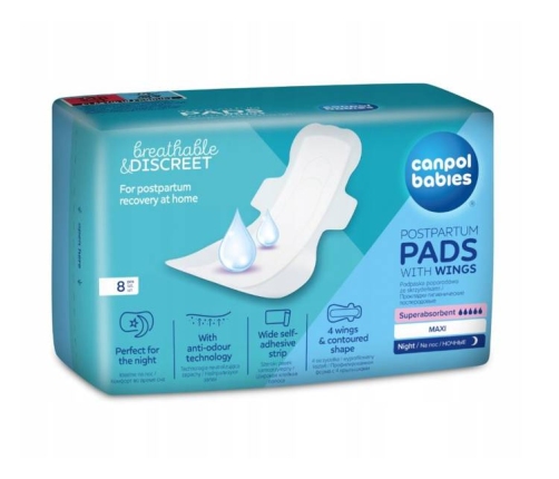 Superchłonne podpaski poporodowe Canpol babies są idealnym rozwiązaniem dla kobiet w czasie połogu do użytkowania w domu po wyjściu ze szpitala. Podpaski poporodowe są cieńsze i dyskretniejsze niż podkłady poporodowe, ale również bardzo chłonne i oddychające. Zwykłe podpaski nie sprawdzają się w tej sytuacji.