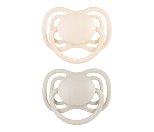 Smoczek uspokajający zrelaksuje i wyciszy Maluszka. Płaska gumka o symetrycznym kształcie jest przyjazna dla zgryzu i łatwa do zaakceptowania przez dziecko. Smoczek dobrze dopasowuje się do buzi dziecka niezależnie od sposobu umieszczenia, a jego kształt jest polecany przez ekspertów jako wspierający naturalny rytm ssania. Gumka została wykonana z najwyższej jakości, bezpiecznego i delikatnego silikonu. Jest bezzapachowa i bezsmakowa. Tarczka zapewnia maksymalny dopływ powietrza, dzięki czemu zapobiega podrażnieniom na delikatnej buzi dziecka i minimalizuje ryzyko odciskania się smoczka. Specjalnie zaprojektowany kształt tarczki ułatwia również swobodne oddychanie i połykanie śliny.