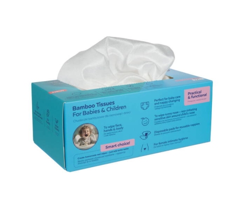 Włóknina bambusowa, z której są zrobione chusteczki jest bardzo wytrzymała – nie rozrywa się podczas użytkowania, dlatego świetnie sprawdzą się także jako domowe chusteczki nawilżane, wystarczy że zamoczysz je w wodzie.