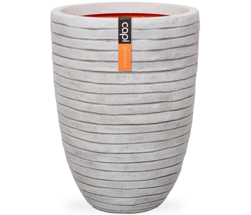 Capi Nature Row puķu poda izteiksmīgais dizains ir veidots, iedvesmojoties no pludmales smilšu raksta. Šis puķu pods noteikti piešķirs mierīgu un vienlaikus rotaļīgu pieskārienu jebkurām iekštelpām vai āra teritorijai. To var lieliski kombinēt ar citiem Capi Nature Row kolekcijas puķu podiem, kas pieejami dažādās formās un izmēros.