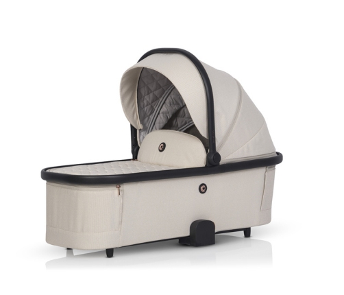 Dodatkową funkcją wysokiej gondoli do wózka AXO SHINE są przyciski z pamięcią (tzw. memory buttons), które pozwalają na wypięcie gondoli ze stelaża przy użyciu jednej ręki. Wystarczy, że wciśniesz estetyczne miedziane przyciski po obu stronach gondoli i uniesiesz gondolę, trzymając za wygodny uchwyt w budce.